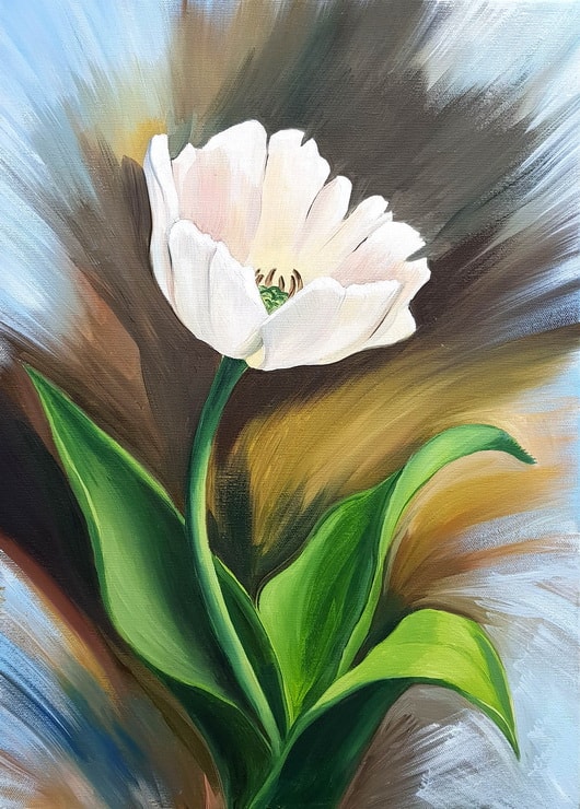 Данный мастер-класс по праву стал бестселлером во многих арт-студиях и теперь возможность написать «Белый тюльпан» есть у Вас. Данный референс принадлежит Игорю Левашову, который в своем творчестве воспевает красоту цветов. Вашему вниманию белый изящный тюльпан символ нежности и красоты, гимн чистоты и искренней любови. Многие верят еще со времен появления цветка на территории Европы, что белый тюльпан приносит счастье в любви. Нам же он принесет удовольствие от его написания. В начале мастер-класса мы немного поговорим о цветах, символах и формах, о законах живописи. Потом непосредственно перейдем к написанию цветка. Мы выбираем холст форматом 40Х50 для данной работы. Сделаем подмалевок и создадим прекрасную работу, которая станет украшением Вашего дома и напоминанием что рисовать может каждый, нужно лишь захотеть!